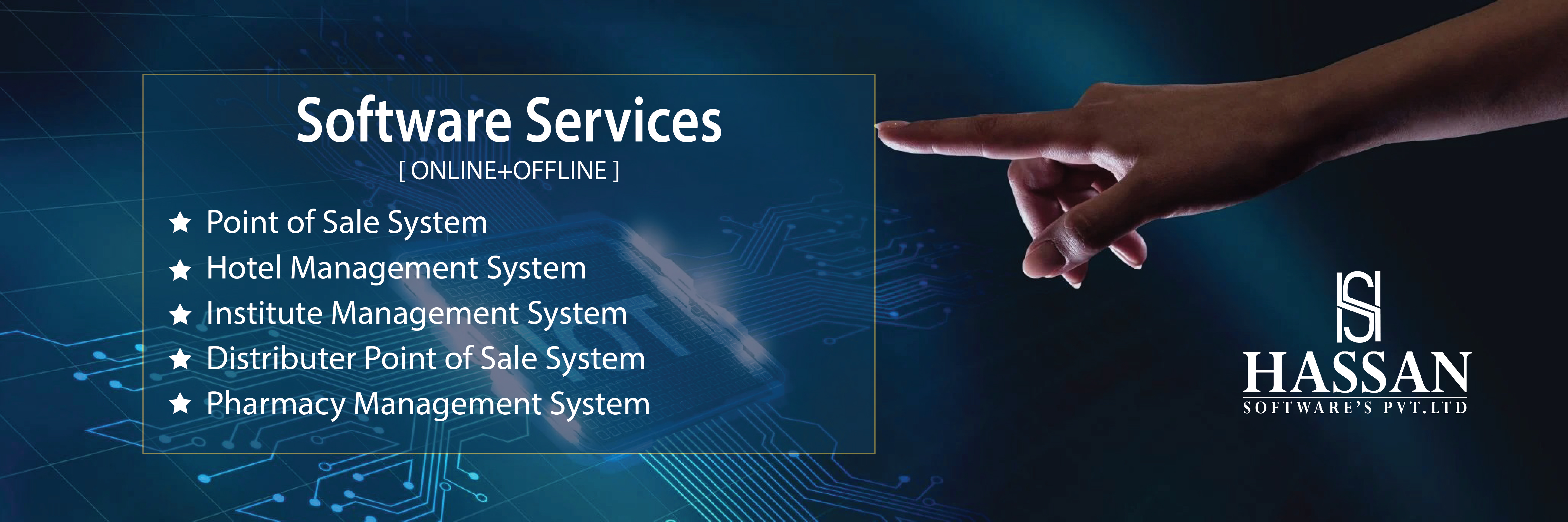 Hassan Software's Pvt. Ltd is an emerging firm in Pakistan producing high quality softwares since 2017. We produce intelligent and powerful software to maneuver our clients’ jobs competently. We listen, research, and understand the unique requirements of each business to build long-term relationships.